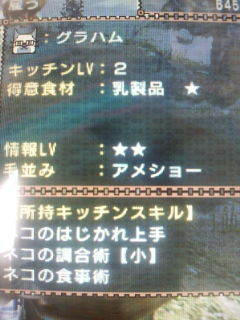 漸く村クエも☆☆☆まで受けられるようになり、アイルーも新しい子を雇えるってことで、どんな子がいるのかなあと覗いてみたらまさかの彼がいました。