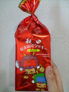 売り場のTさんから秋田土産のなまはげクッキーなるものをいただきました。笑