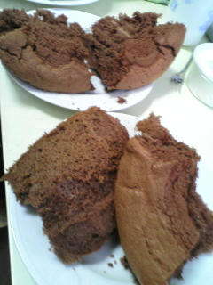 おみやげで持って行ったシフォンケーキが型から外せなくてえらい解体作業になったり(解体後、残骸)