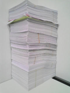 書類の山がこうなってくるといっそ楽しくなってくるから人間って不思議。