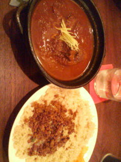 その際なづき以外は皆キーマカリーセットだったのでご飯に挽肉?みたいのが乗っていてのでなづきの皿に各自皆さんからかわいそうな子に恵んであげる的な感じでその挽肉を分けていただきました。笑