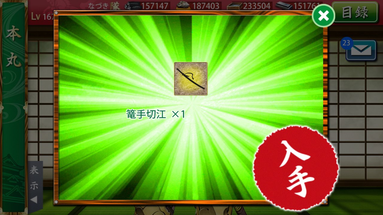 おま、それのどこがじじいなの・・・って小一時間問い詰めたい。全然じじいなんかじゃないし閃光が三日月っていう演出もずるいし何よりも強すぎる。さすが第一部隊という風格を全面に出してくる刀よ・・・