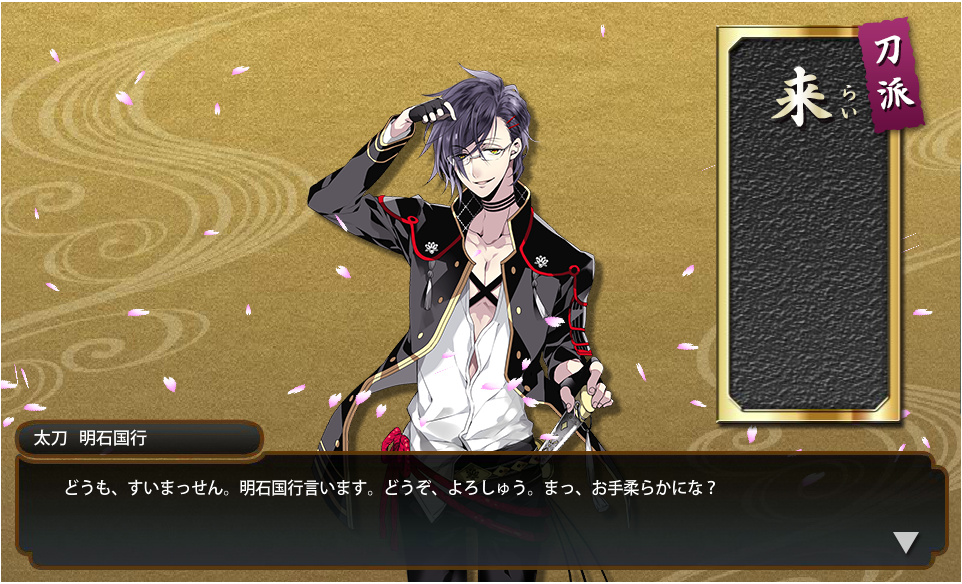 「自分、蛍丸と愛染国俊の保護者の明石国行いいます。よろしゅう」