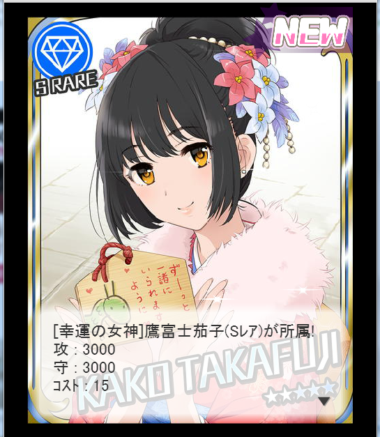 何事も期待してはいけないんだと悟りました…まさかの茄子ゲットに震えが止まらない……そしてこの幸運の女神の塊の彼女を嫁に出します……1枚だけ持っていても!意味がないから!!!!