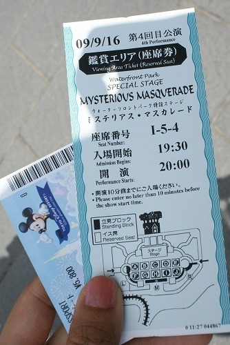 この日に初めてミステリアスマスカレードのショーがあって、抽選で座ってみれるということを知った私です。