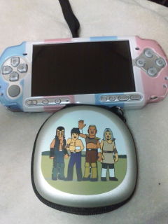 カバーのストライプはいいとして、ケース入れはThe World of GOLDEN EGGS柄北斗の拳です。前に密林でPSP本体ケースがあるのは知ってたんですが、まさかのソフトケースバージョンを見つけてしまって即購入。