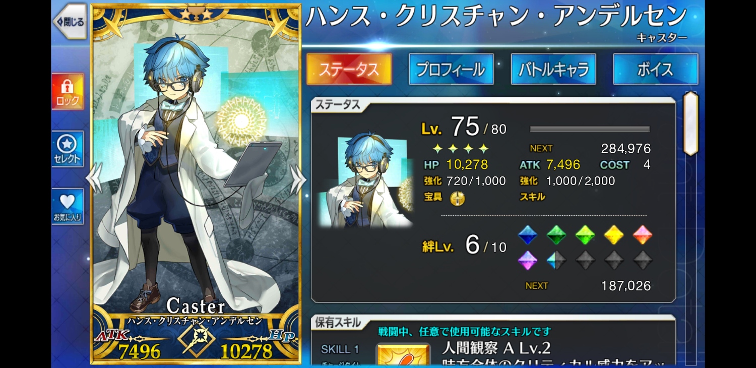 個人的にはどの子安もTHE子安ですが、アンデルセンがとても子安だしそもそもアンデルセンがめちゃくちゃ男前でうっかり惚れてしまうから恐ろしい。そして★2だろうがおかまいなしにお前が★5になるんだよ!!!!!!!!とばかりに聖杯を与えている途中です。物理(聖杯)で殴れ。