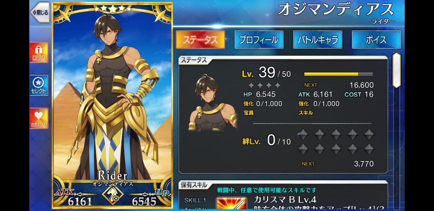 でも後輩としてやってきたのがファラオだからなんかもうちょっとがんばってくれな!全然ライダーいないからスキル上げの石は大量に余ってるんだけど種火がない。すまない金時